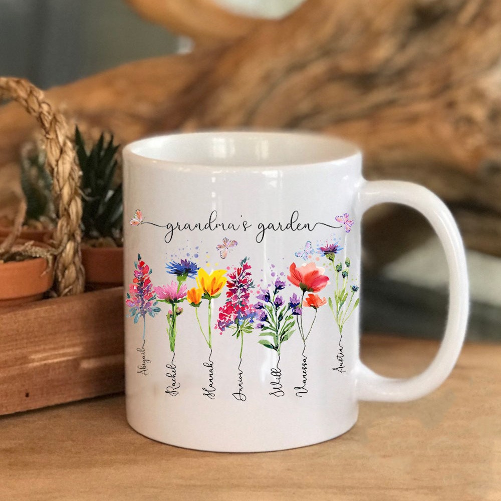 Custom Grandma's Garden Mug Birth Month Flower With Grandchildren Name Gift Ideas For Mother's Day