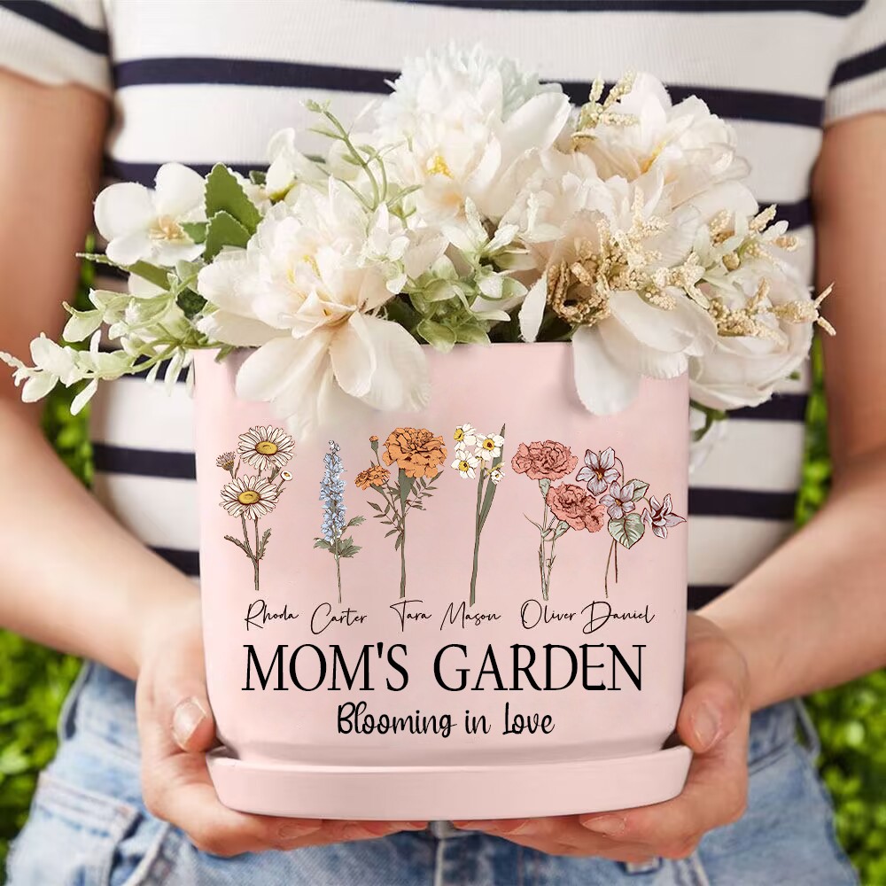 Custom Grandma's Garden Plant Pot With Grandkids Name and Birth Month Flower For Mother's Day