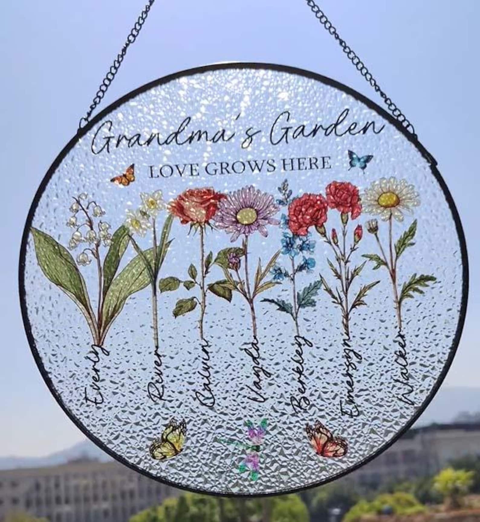 Custom Grandma's Garden Stained Glass Personalized Love Grows Here Suncatcher Mothers Day Gift Christmas Gifts