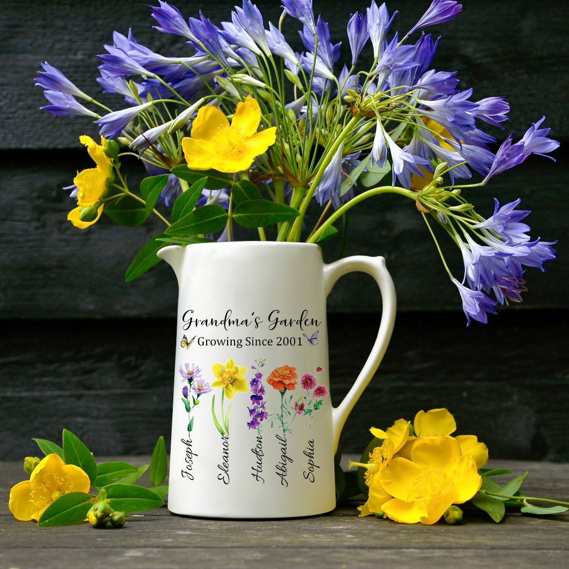 Custom Mom's Garden Vase With Kids Names and Birth Month Flowers For Mother's Day Gift