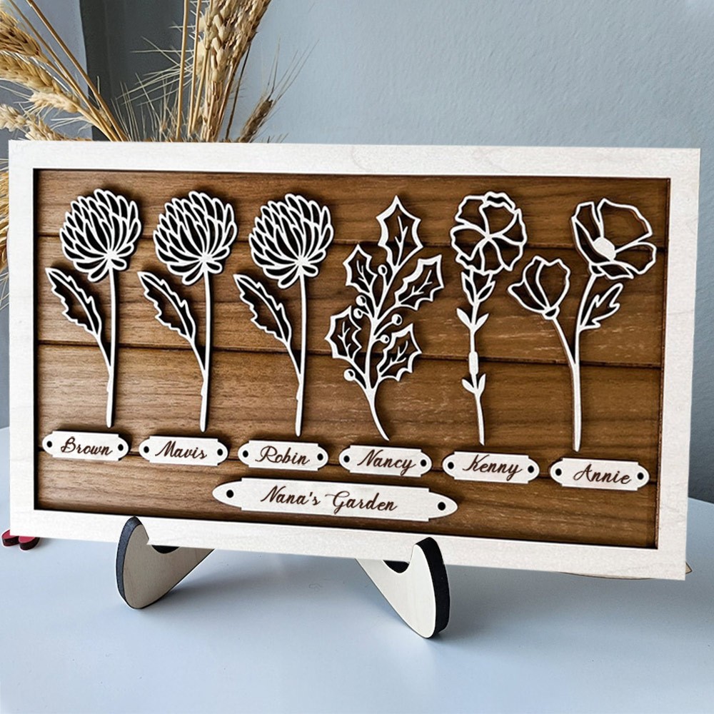 Custom Nana's Garden Birth Flower Wood Sign Home Decor Wall Art For Mother's Day Gift Ideas