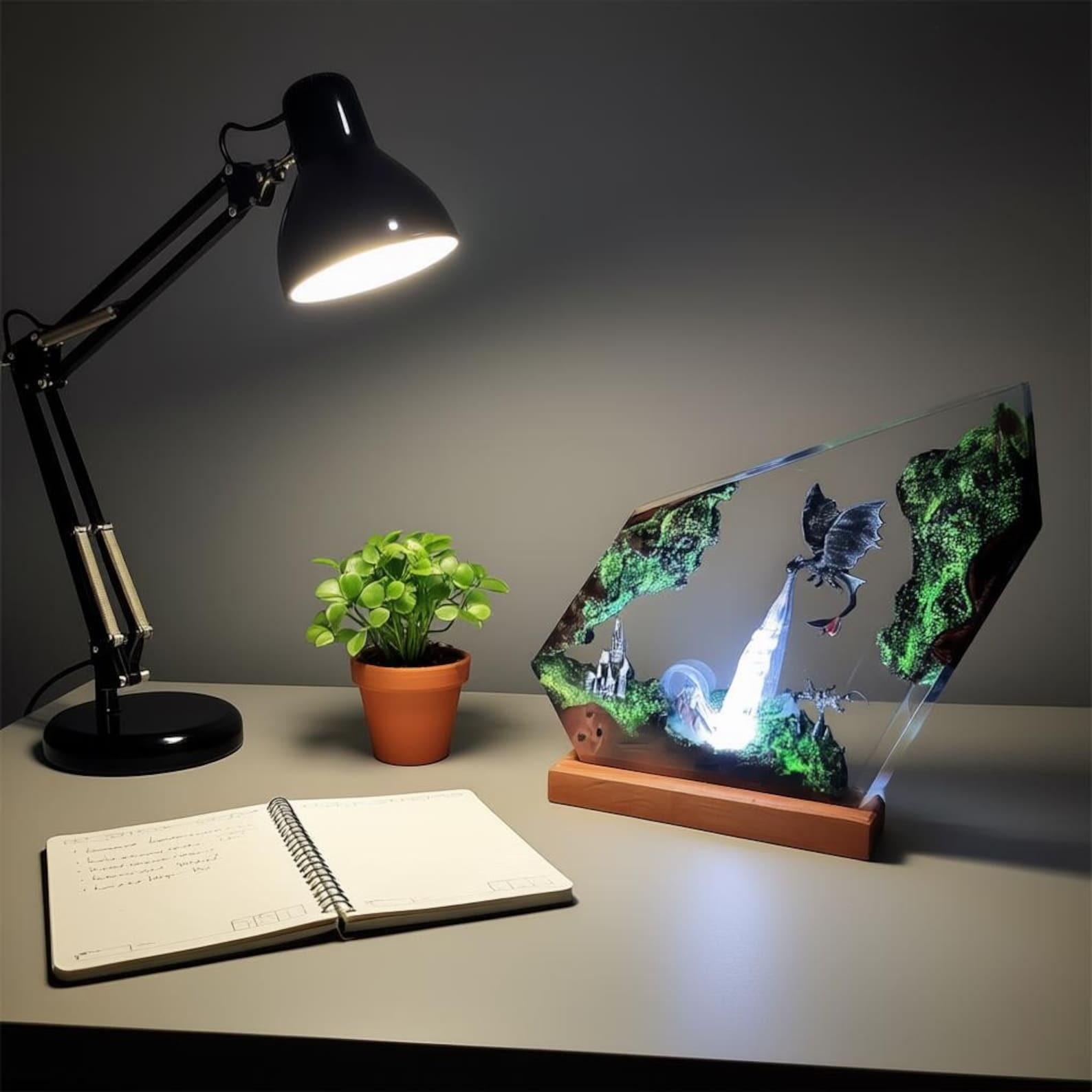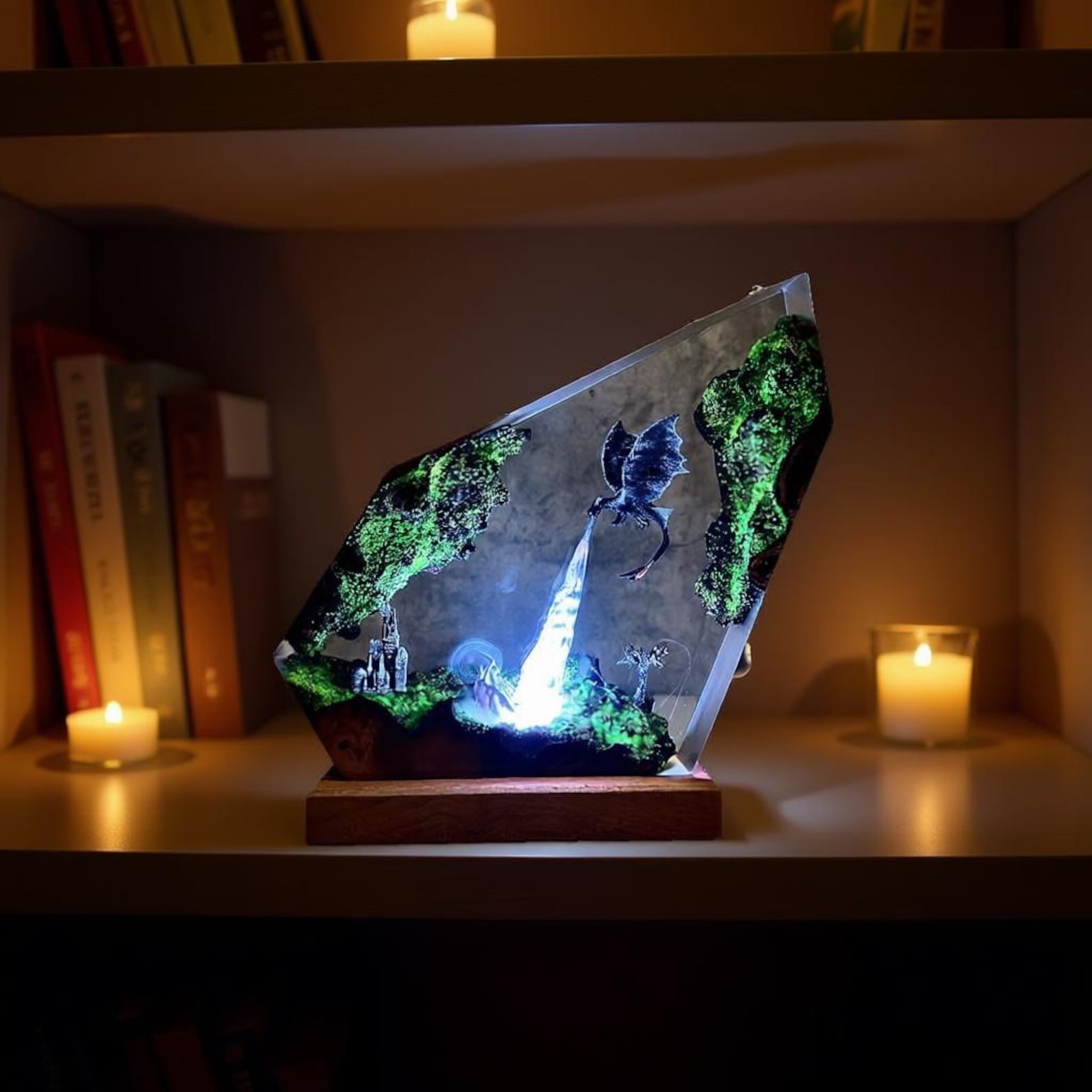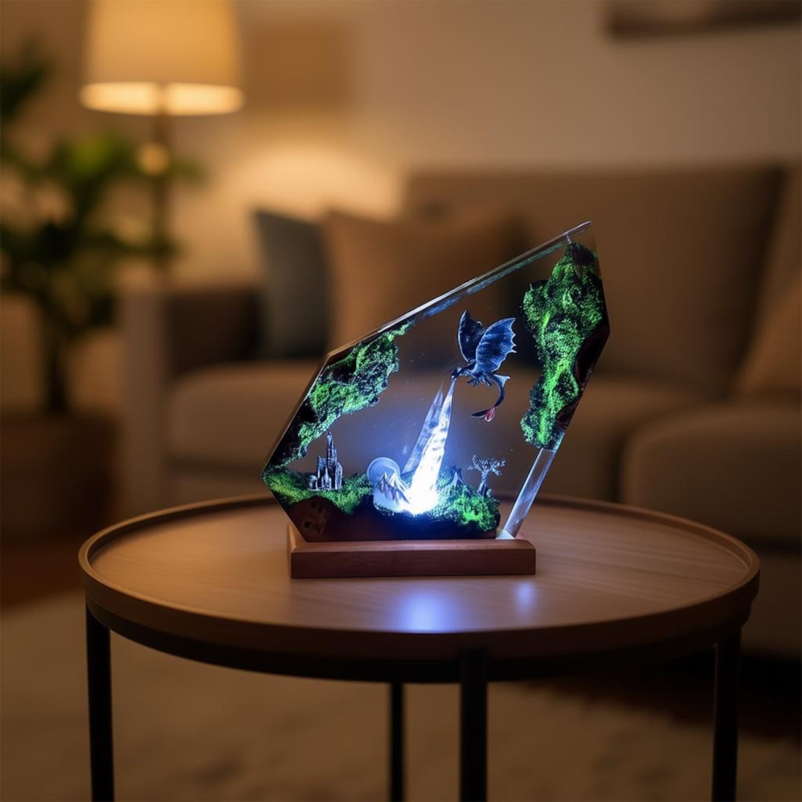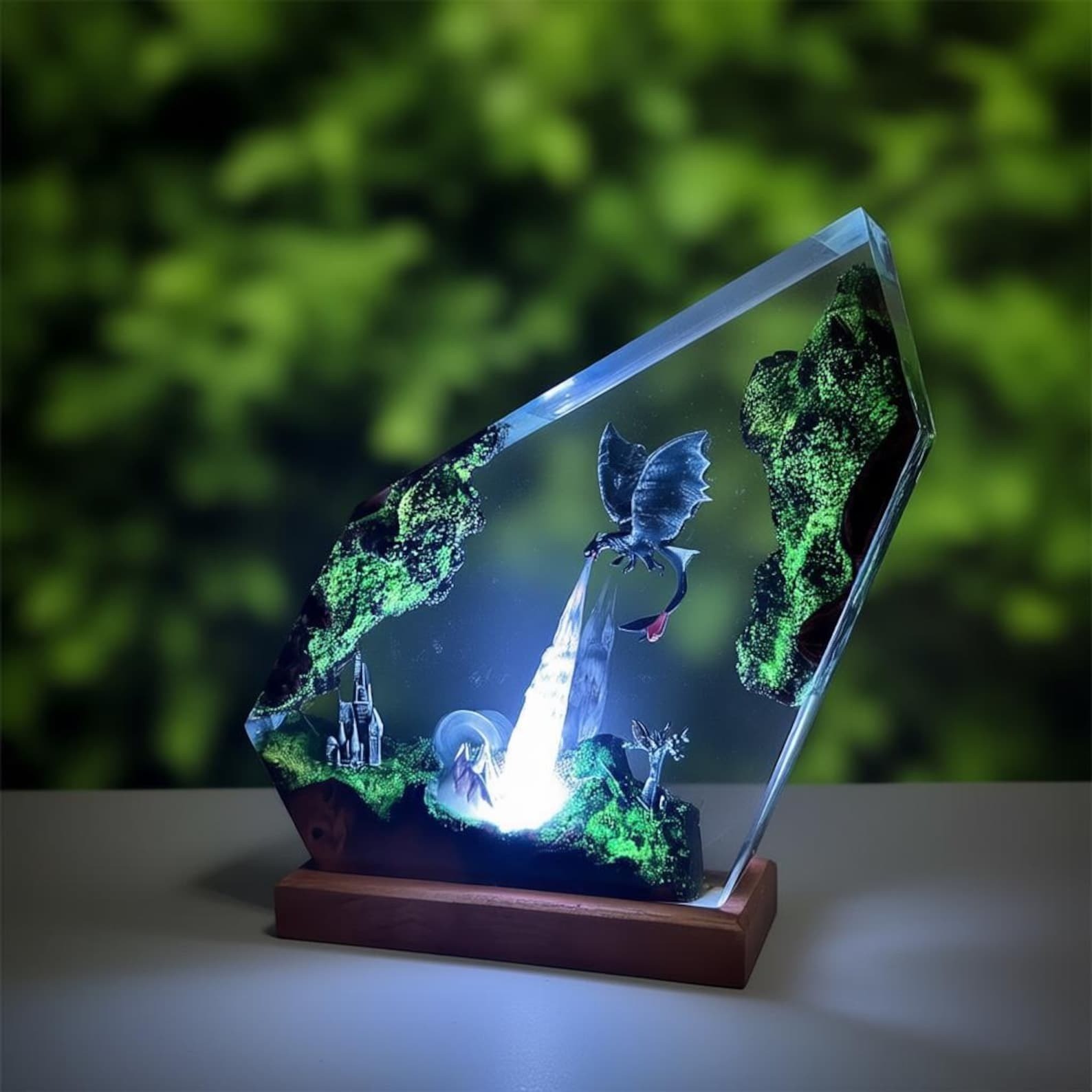 Dragon Resin Diorama Lamp Crystal Epoxy Fantasy Art Wood Base For Christmas Gifts