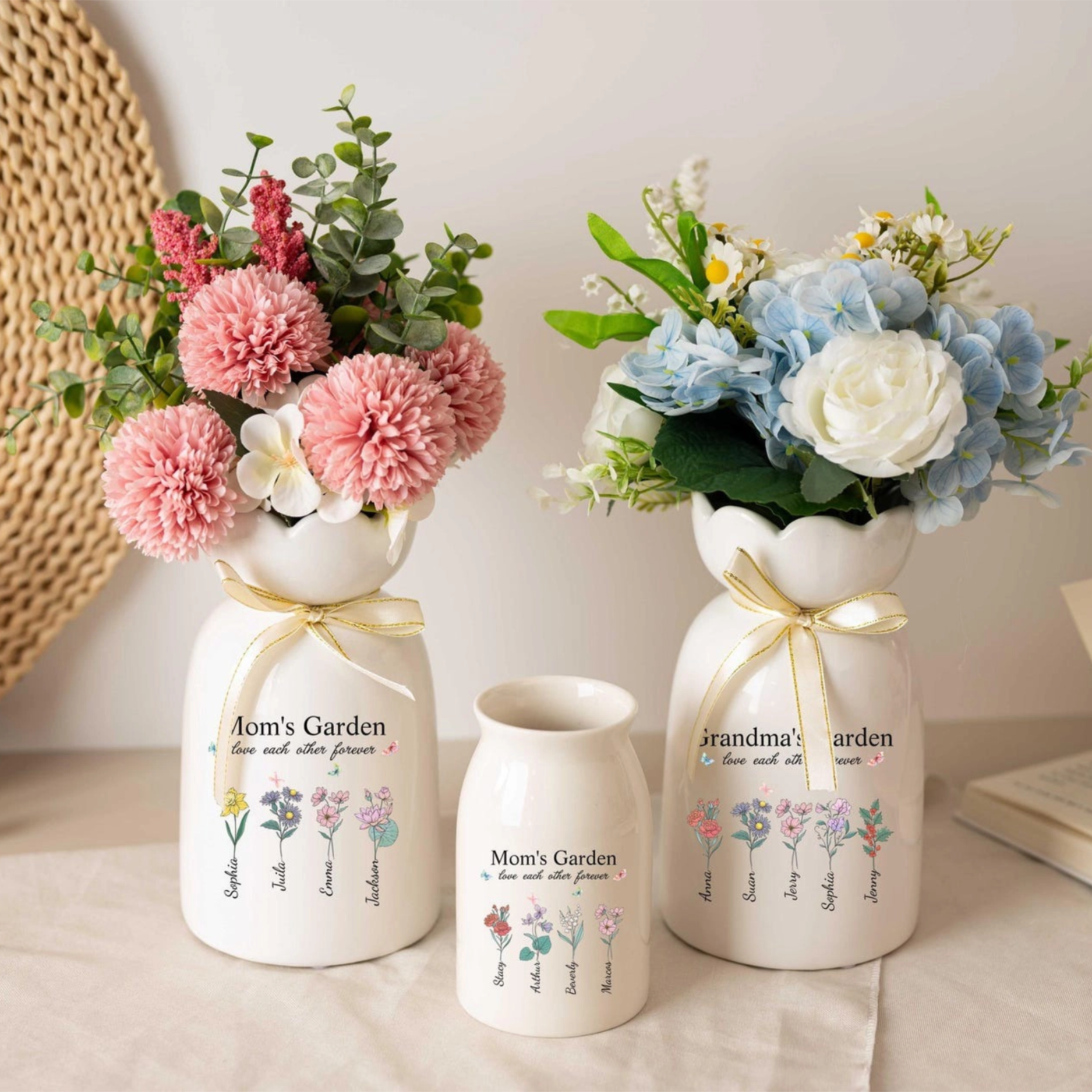 Personalized Grandma's Garden Flower Vase Birth Flower Vase with Kids Names Ceramic Vase Mothers Day Gift for Nana
