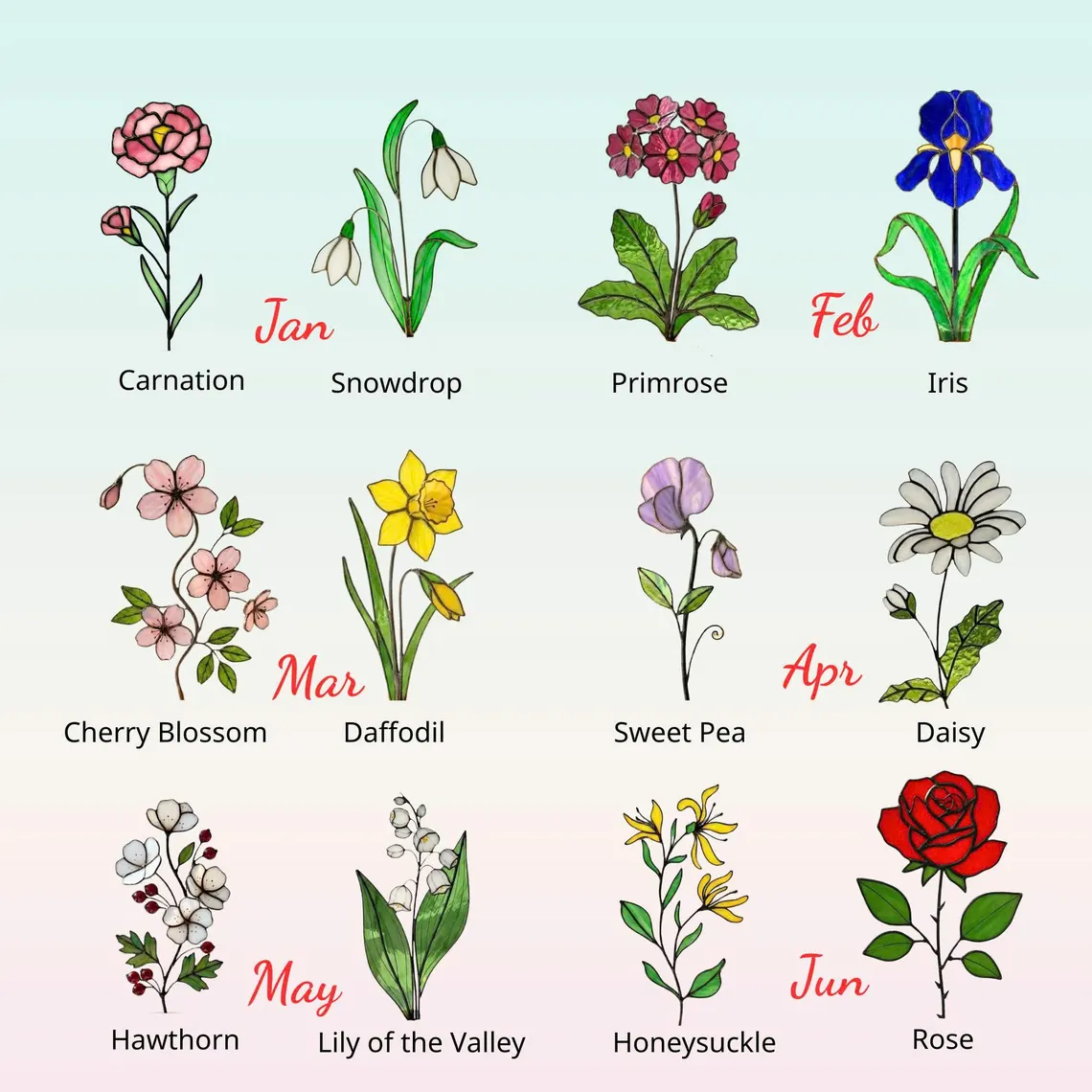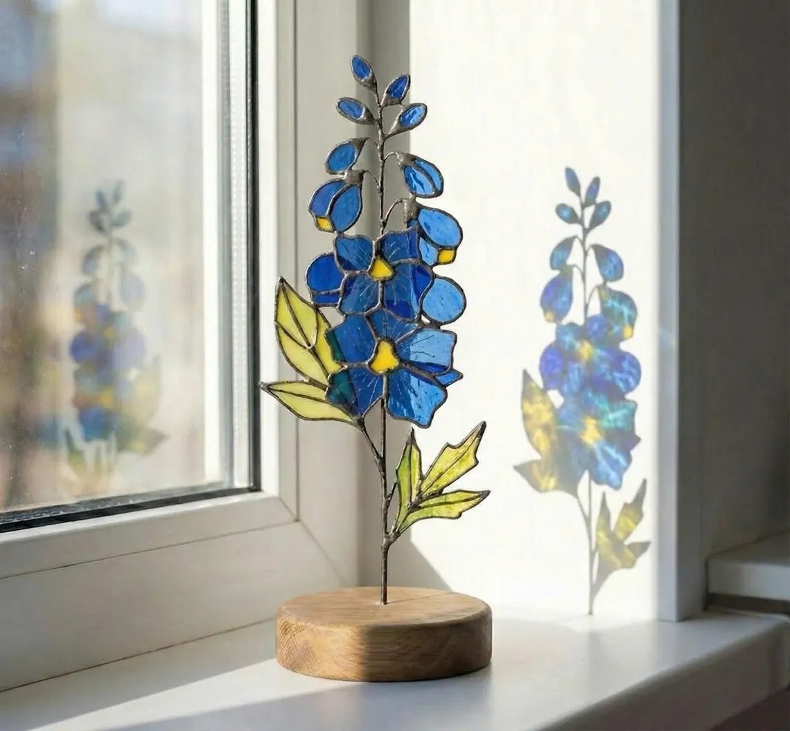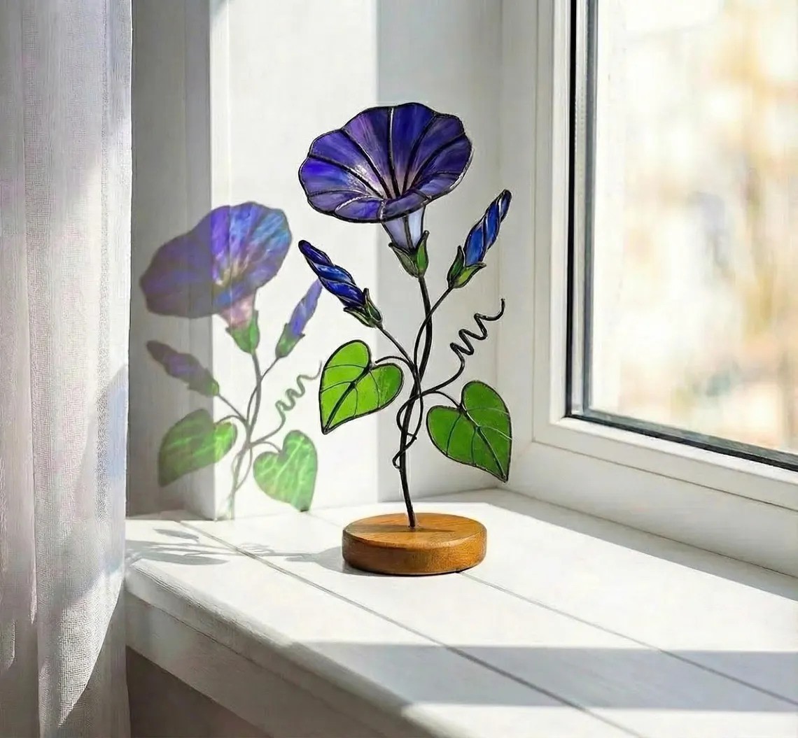 Stained Glass Handmade Floral Glass Decor Birth Flower Mother's Day Gift of Mom or Grandma